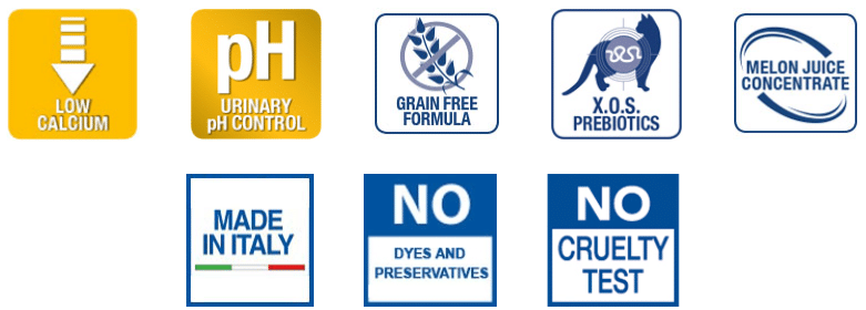 מזון רפואי מלא ושלם לחתולים, המיועד להפחתת היווצרות אבני אוקסלט בכליות. מכיל תרכיז מיץ מלון לנטרול רדיקלים חופשיים, תה ירוק עבור תמיכה בשתן ו-Xylo-oligosaccharides (XOS) לאבטחת המעי מיקרוביוטה. התכשיר מאופיין ברמת סידן נמוכה, נמוכה רמת ויטמין D ותכונות אלקליזציה בשתן.